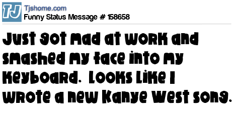 X says Just got mad at work and smashed my face into my keyboard. Looks like I wrote a new Kanye West song.