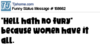 - # 147372 Hell hath no fury like a woman misunderstood.