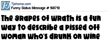 - # 160274 The Grapes of Wrath is my favorite book title talking about a Woman drinking wine and angrily planning on burning your house to the ground.