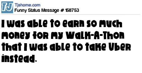 X says I was able to earn so much money for my Walk-A-Thon that I was able to take Uber instead.