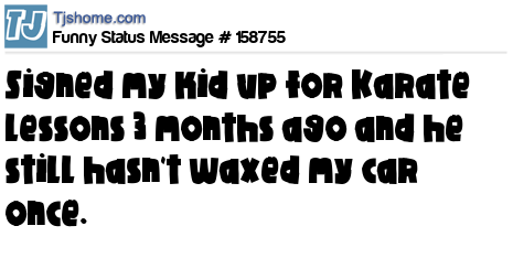 X says Signed my kid up for Karate lessons 3 months ago and he still hasn't waxed my car once.
