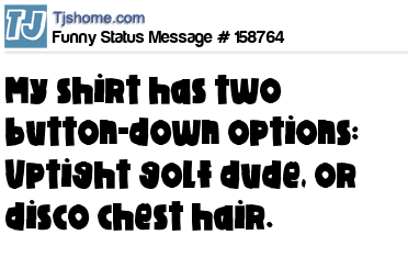 X says My shirt has two button-down options: Uptight golf dude, or disco chest hair.