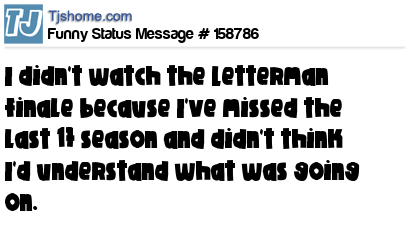 X says I didn't watch the Letterman finale because I've missed the last 17 season and didn't think I'd understand what was going on.