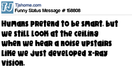 X says Humans pretend to be smart, but we still look at the ceiling when we hear a noise upstairs like we just developed x-ray vision.
