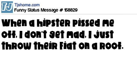 X says When a hipster pissed me off, I don't get mad, I just throw their Fiat on a roof.