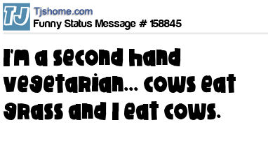 - # 104471 I'm a second-hand-vegetarian. Cows eats grass. I eat cows.
