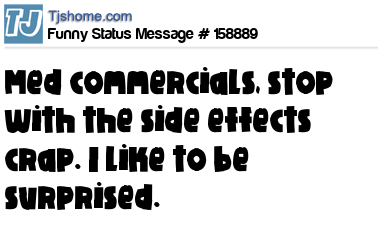 X says Med commercials, stop with the side effects crap. I like to be surprised.