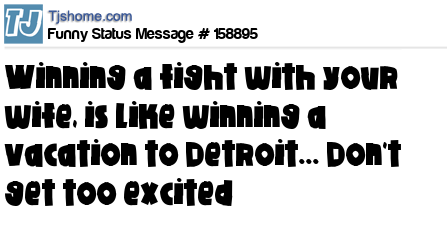 X Winning a fight with your wife, is like winning a vacation to Detroit... Don't get too excited