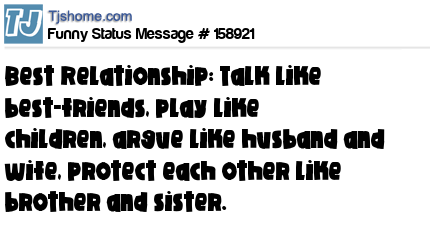 - # 117377 Best Relationship: Talk like bestfriends, play like children, argue like husband and wife, protect each other like brother and sister.