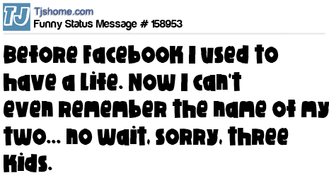 X says Before Facebook I used to have a life. Now I can't even remember the name of my two... no wait, sorry, three kids.
