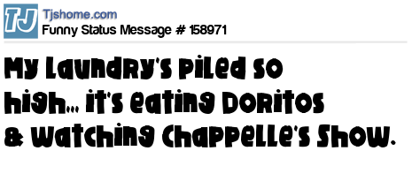 X My Laundry's piled so high,,, it's eating Doritos & watching Chappelle's Show.