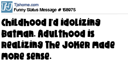 X says Childhood I'd idolizing Batman. Adulthood is realizing The Joker made more sense.