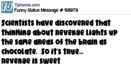 X says Scientists have discovered that thinking about revenge lights up the same areas of the brain as chocolate. So it's true… revenge is sweet