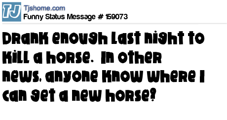 X says Drank enough last night to kill a horse. In other news, anyone know where I can get a new horse?