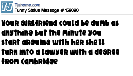 X Your girlfriend could be dumb as anything but the minute you start arguing with her she'll turn into a lawyer with a degree from Cambridge