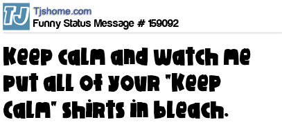 X says Keep calm and watch me put all of your "Keep Calm" shirts in bleach.