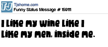 - # 90273 Ladies: A good man can make you feel sexy, strong and able to take on the world...oh sorry thats wine...wine does that.