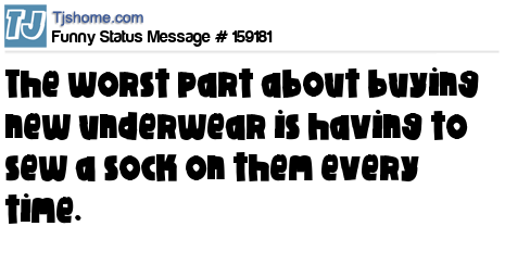 X says The worst part about buying new underwear is having to sew a sock on them every time.