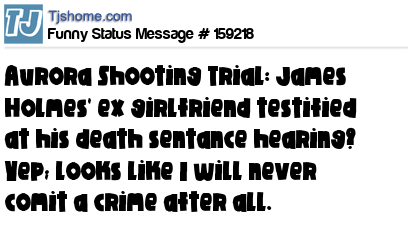 X says Aurora Shooting Trial: James Holmes' ex girlfriend testified at his death sentance hearing? Yep; looks like I will never comit a crime after all.