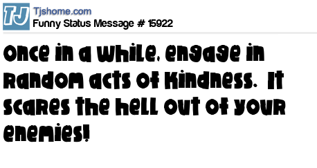 X is Once in a while, engage in random acts of kindness. It scares the hell out of your enemies!