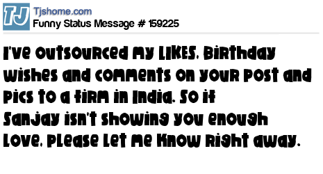 X says I've outsourced my LIKES, Birthday wishes and comments on your post and pics to a firm in India. So if Sanjay isn't showing you enough love, please let me know right away.