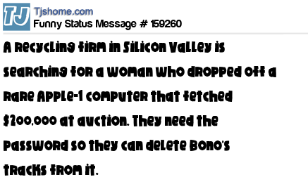 X says A recycling firm in Silicon Valley is searching for a woman who dropped off a rare Apple-1 computer that fetched $200,000 at auction. They need the password so they can delete Bono's tracks from it.