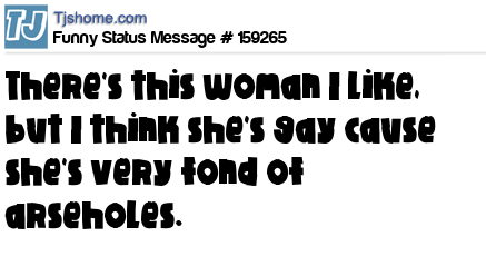 X  There's this woman I like, but I think she's gay cause she's very fond of arseholes.