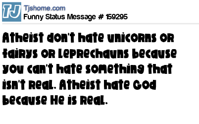 X says Atheist don't hate unicorns or fairys or leprechauns because you can't hate something that isn't real. Atheist hate God because He is real.