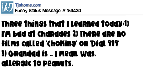 X says Three things that I learned today:1) I'm bad at Charades 2) There are no films called 'Choking' or 'Dial 999' 3) Grandad is .. I mean, was, allergic to peanuts.