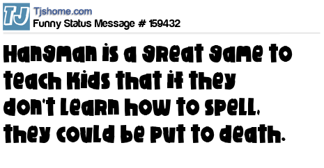 - # 171775 Hangman is a great tool to teach children that if you can't spell a word, someone could lose their life because of their ignorance.