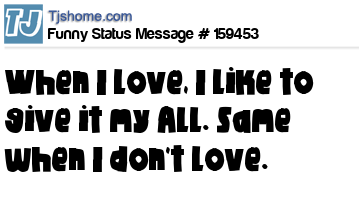 X says When I love, I like to give it my ALL. Same when I don't love.