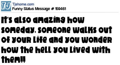 X says It's also amazing how someday, someone walks out of your life and you wonder how the hell you lived with them!!