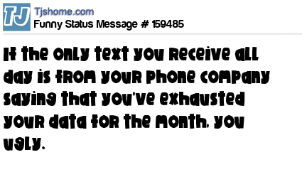 X says If the only text you receive all day is from your phone company saying that you've exhausted your data for the month, you ugly.