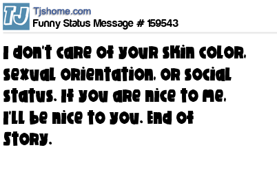 X says I don't care of your skin color, sexual orientation, or social status. If you are nice to me, I'll be nice to you. End of Story.