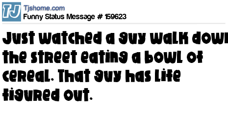X says Just watched a guy walk down the street eating a bowl of cereal. That guy has life figured out.