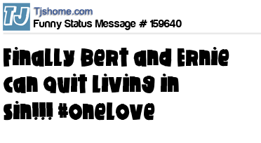 X says Finally Bert and Ernie can quit living in sin!!! #onelove