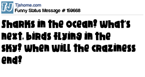 X says Sharks in the ocean? what's next, birds flying in the sky? when will the craziness end?