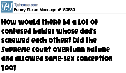X says How would there be a lot of confused babies whose dad's screwed each other? Did the Supreme Court overturn nature and allowed same-sex conception too?