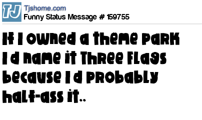 X says If I owned a theme park I’d name it Three Flags because I’d probably half-ass it..