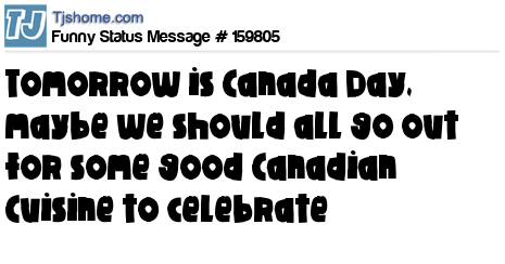 X says Tomorrow is Canada Day, maybe we should all go out for some good Canadian Cuisine to celebrate