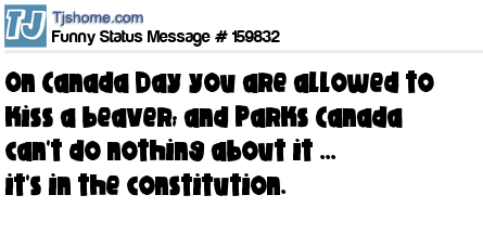 X says On Canada Day you are allowed to kiss a beaver; and Parks Canada can't do nothing about it ... it's in the constitution.