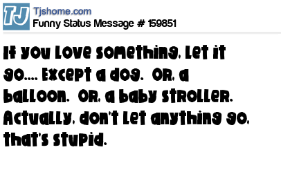 X says If you love something, let it go.... Except a dog. Or, a balloon. Or, a baby stroller. Actually, don't let anything go, that's stupid.