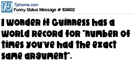 X says I wonder if Guinness has a world record for "number of times you've had the exact same argument".
