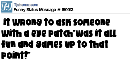 - # 125347 Wondering if it's ok to ask someone with an eye patch,,,,, "Well, was it all fun and games up to that point?"
