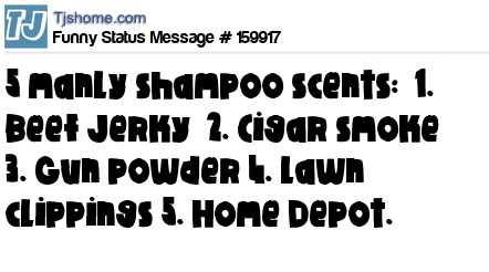 X says 5 manly shampoo scents: 1. Beef Jerky 2. Cigar smoke 3. Gun powder 4. Lawn clippings 5. Home Depot.