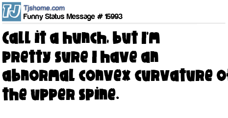 im gonna admit most if not all of my statuses on here are from other sites on the net. I just like to share em and make others laff. aint that what its all about.
