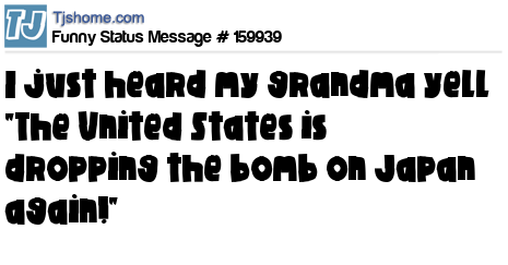 X says I just heard my grandma yell "The United States is dropping the bomb on Japan again!"