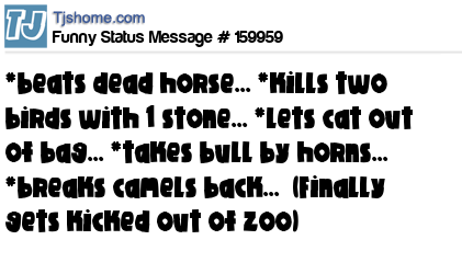 X *beats dead horse... *kills two birds with 1 stone... *lets cat out of bag... *takes bull by horns... *breaks camels back... (Finally gets kicked out of zoo)