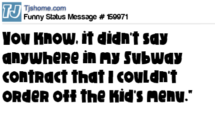 X says You know, it didn't say anywhere in my Subway contract that I couldn't order off the kid's menu."