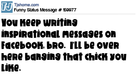 X says You keep writing inspirational messages on Facebook, bro. I'll be over here banging that chick you like.